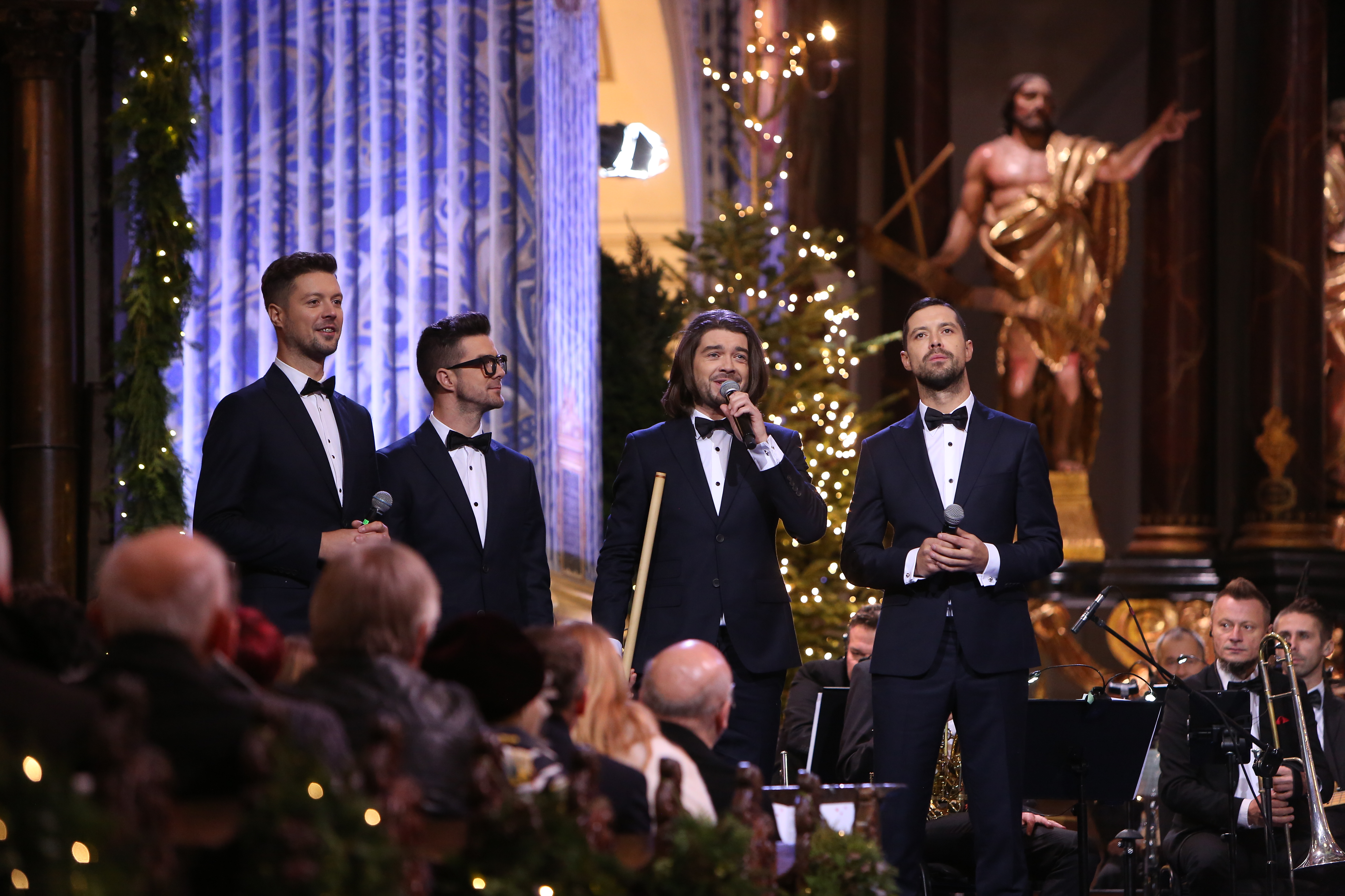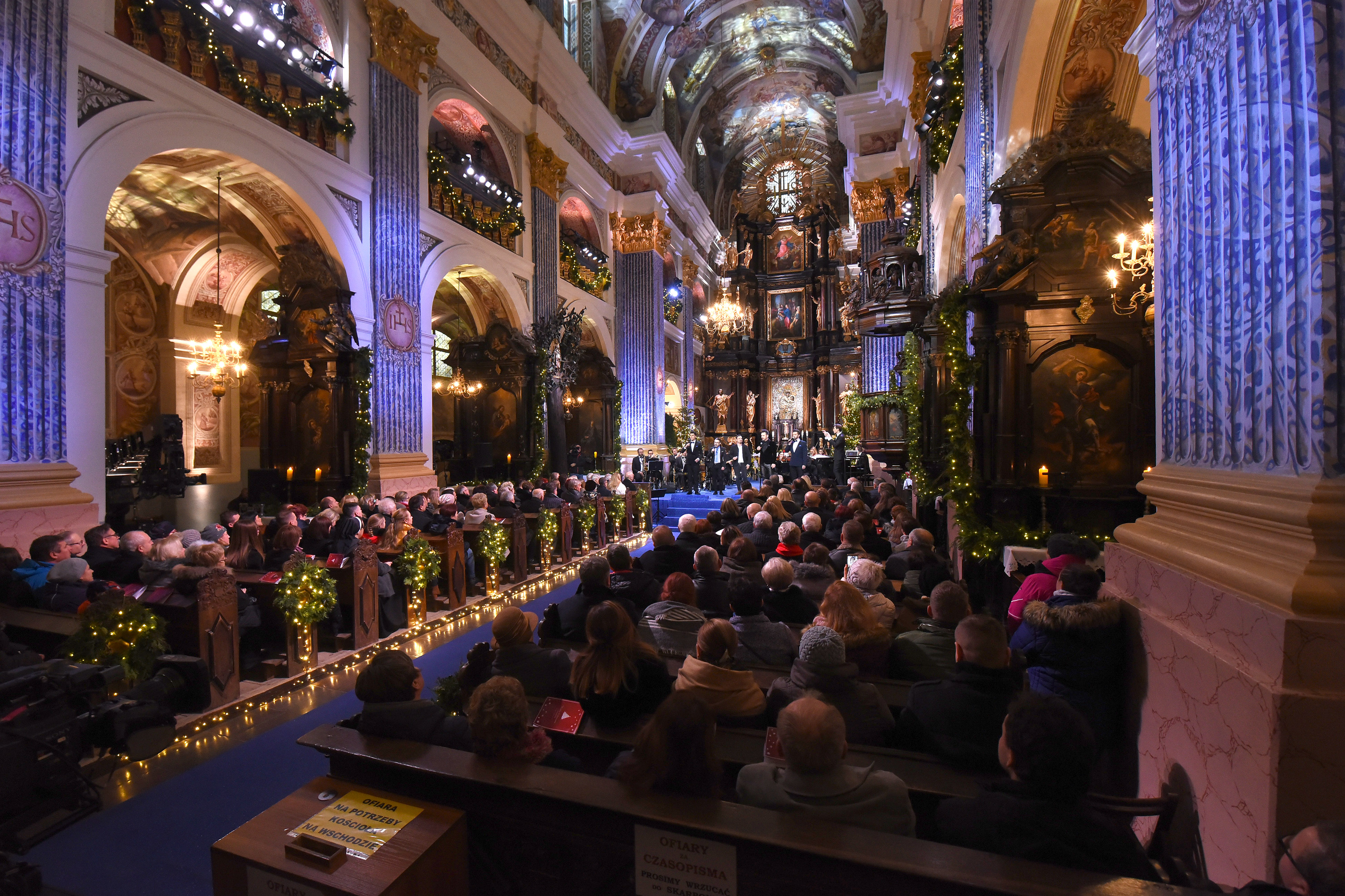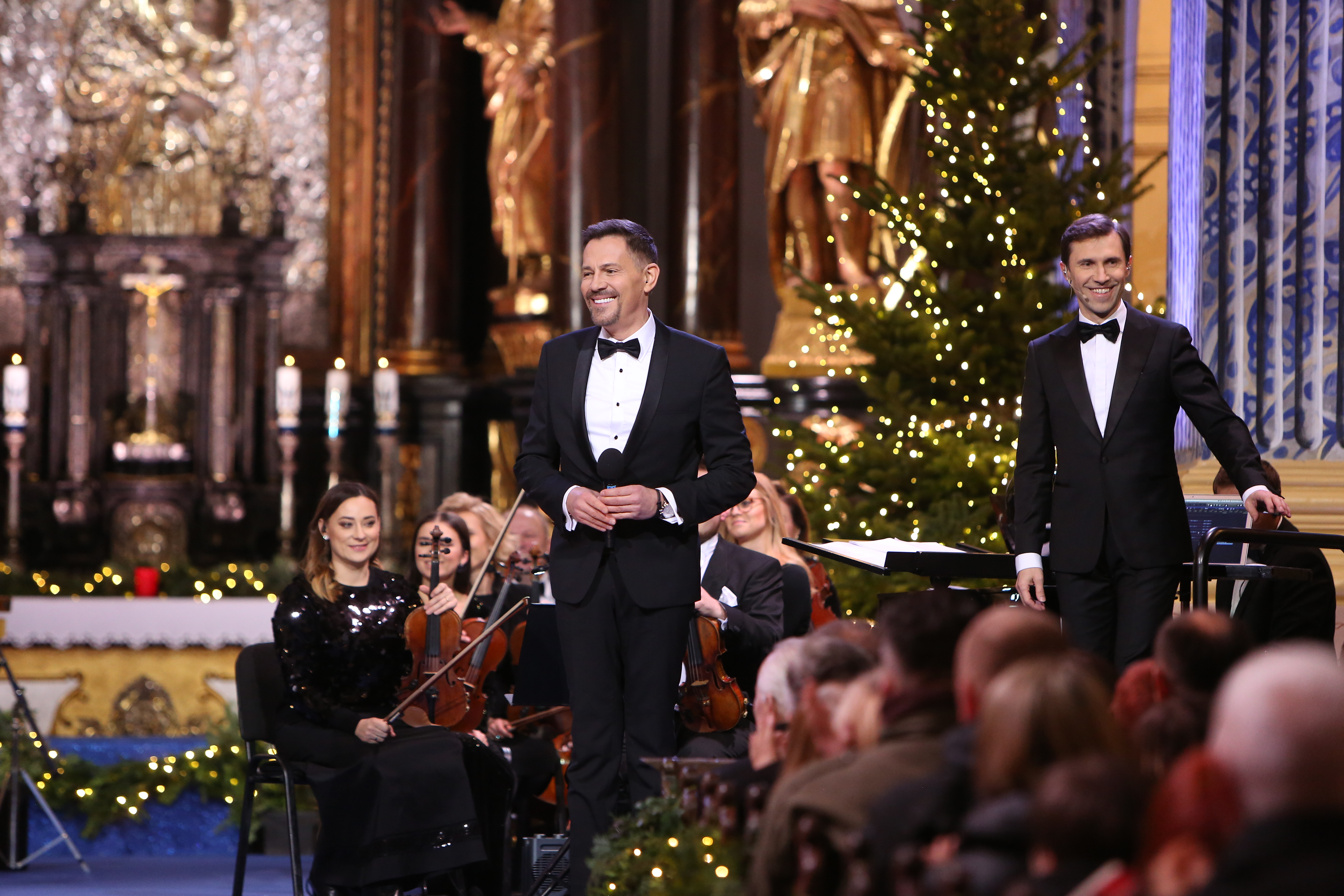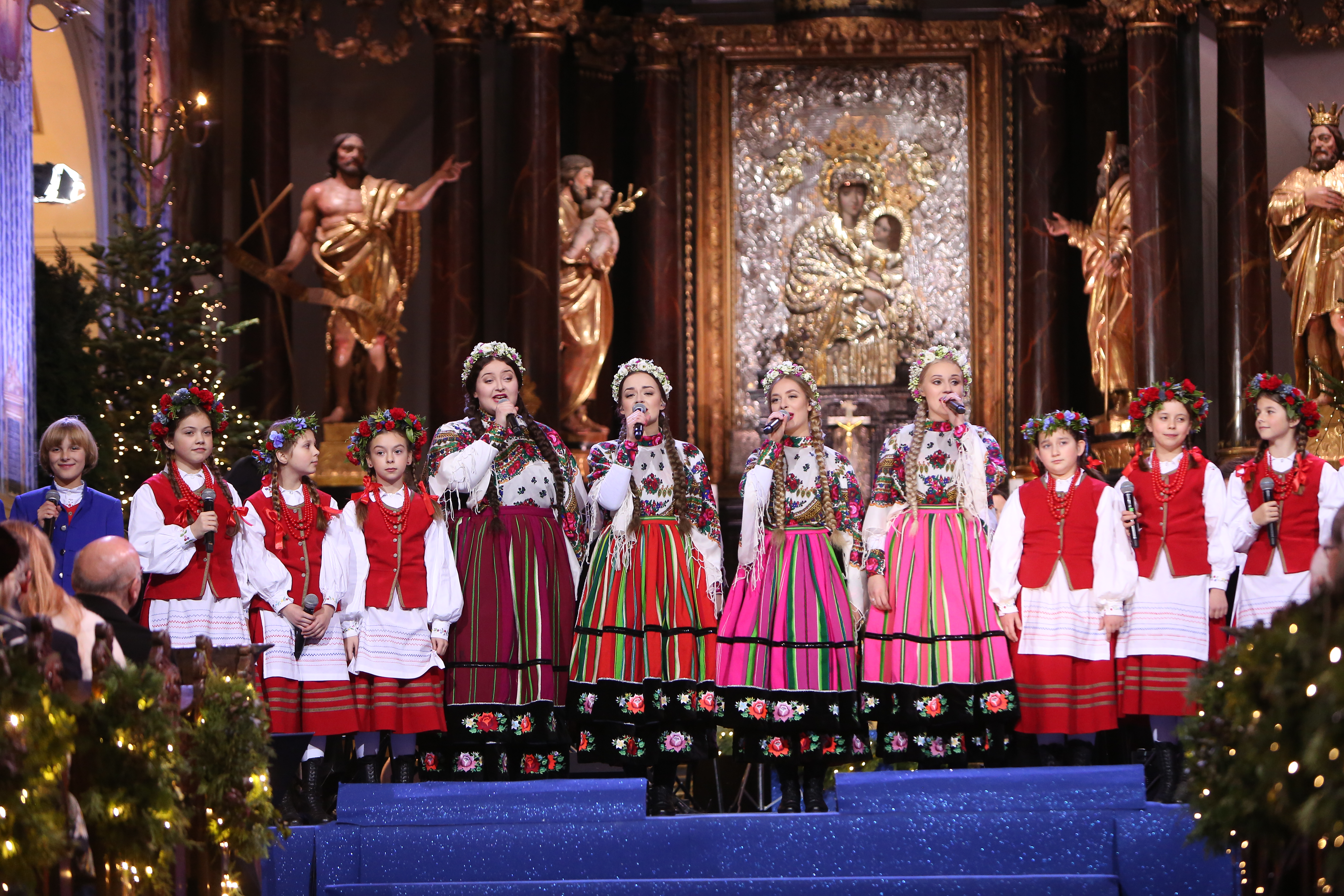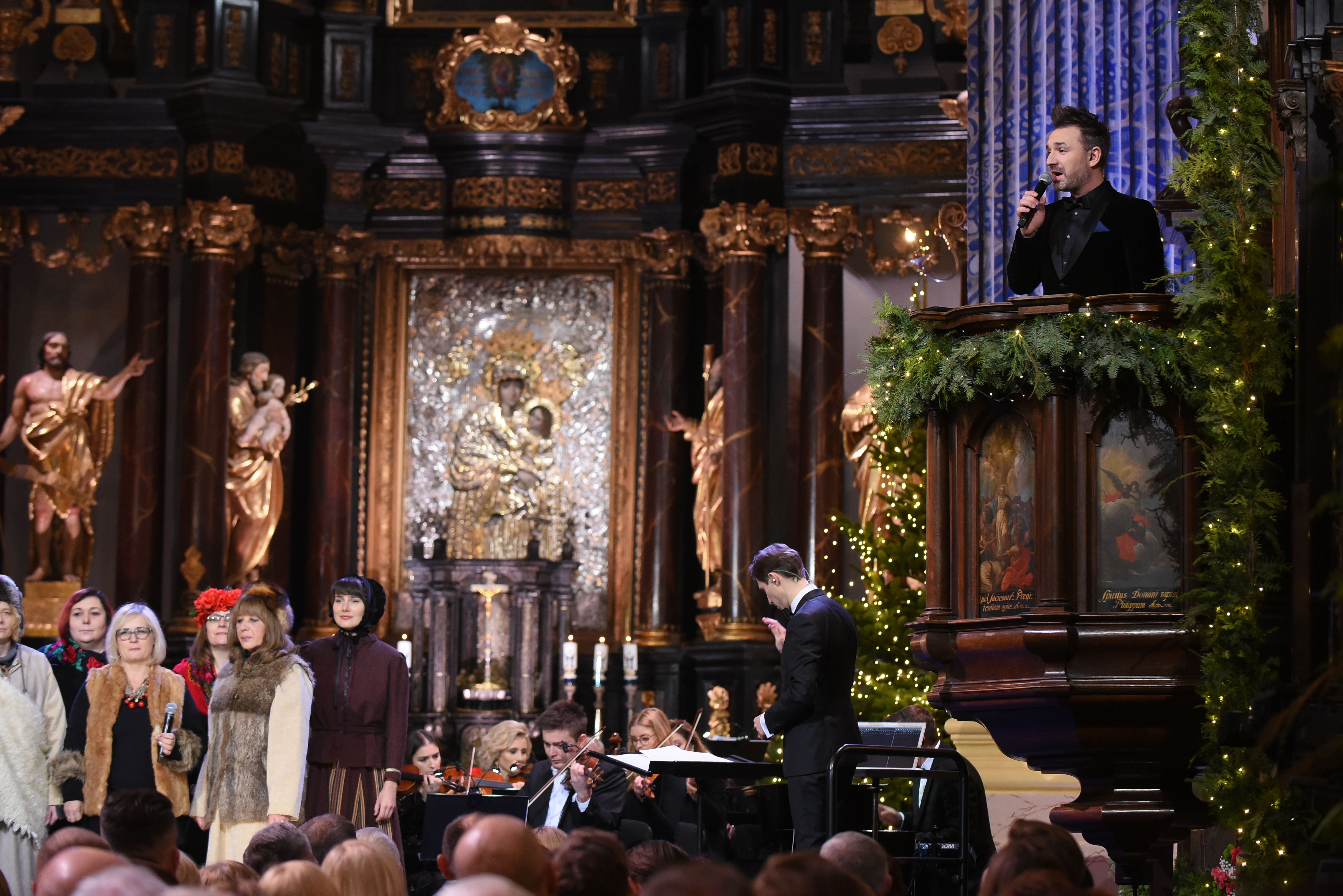 O 16:45 zaprosimy do jednego z najbardziej znanych kościołów kultu maryjnego w Polsce – bazyliki Nawiedzenia NMP w Świętej Lipce. Jej szczególny klimat tworzą organy, dzieło Johanna Mosengela z Królewca, pochodzące z 1721 roku. O wyjątkowości barokowego instrumentu świadczy grupa figur poruszających się w czasie gry. Zabytkowy i jedyny w swoim rodzaju instrument wciąż pełni funkcję użytkową, co widzowie będą mogli zobaczyć podczas tegorocznego kolędowania. Zachwyca również wnętrze kościoła, zwłaszcza XVIII-wieczne malowidło na sklepieniu oraz główny ołtarz z obrazem przedstawiającym Matkę Boską w srebrnej szacie. Ze Świętej Lipki usłyszymy wspaniałych artystów: Michała Bajora, Alicję Majewską i Włodzimierza Korcza, Barbarę Kurdej-Szatan i Rafała Szatana, Ewę Farną i Annę Wyszkoni. Wystąpią też: Filip Lato, Mateusz Ziółko, grupa folkowa Tulia oraz zespoły Enej i Pectus. Będzie im towarzyszyć orkiestra pod dyrekcją Tomasza Szymusia, chór Uniwersytetu Warmińsko-Mazurskiego, chór dziecięcy oraz stworzony przez okolicznych mieszkańców Chór Świętolipski. Tego wieczoru plejada artystów wykona najbardziej znane kolędy m.in. „Przybieżeli do Betlejem”, „Dzisiaj w Betlejem”, „Triumfy Króla Niebieskiego”, „Gdy śliczna Panna”, „Mizerna Cicha”. Artyści zaśpiewają też wspólnie dwie kolędy: „Bóg się rodzi” oraz „Z narodzenia Pana”.